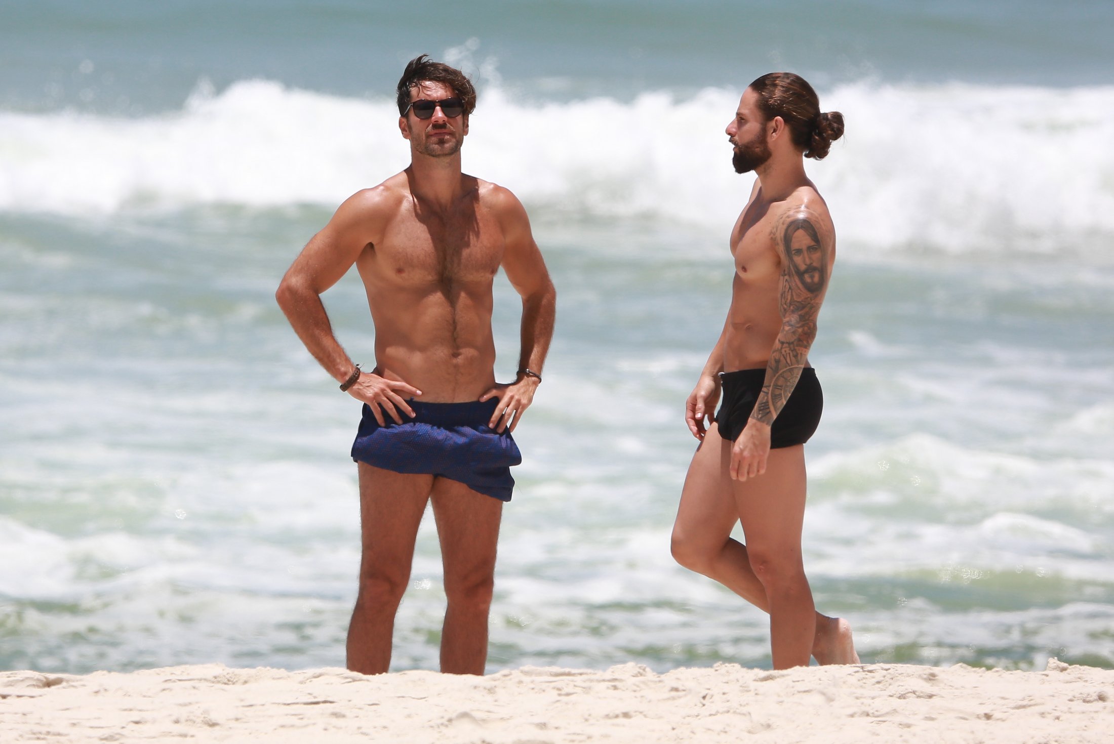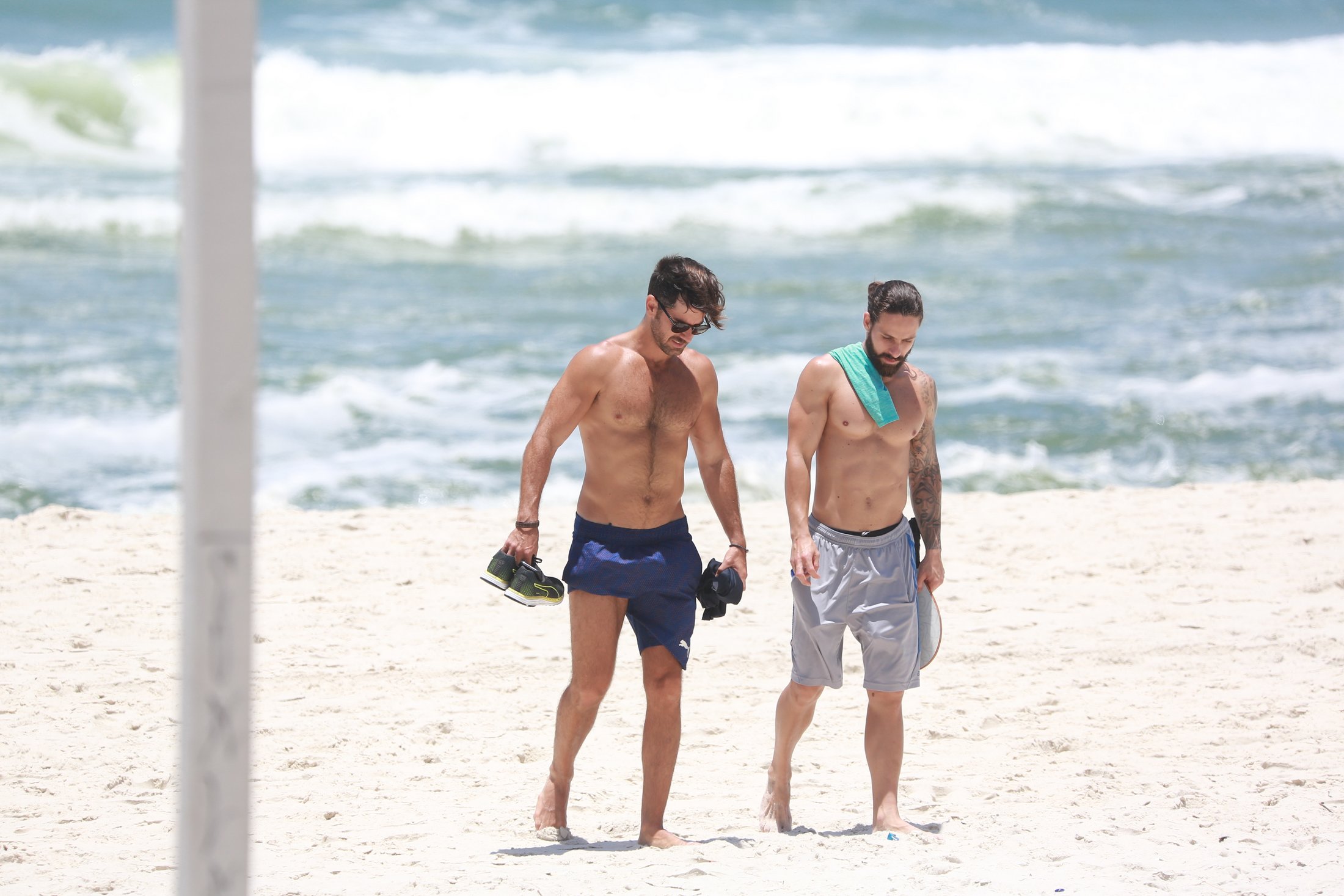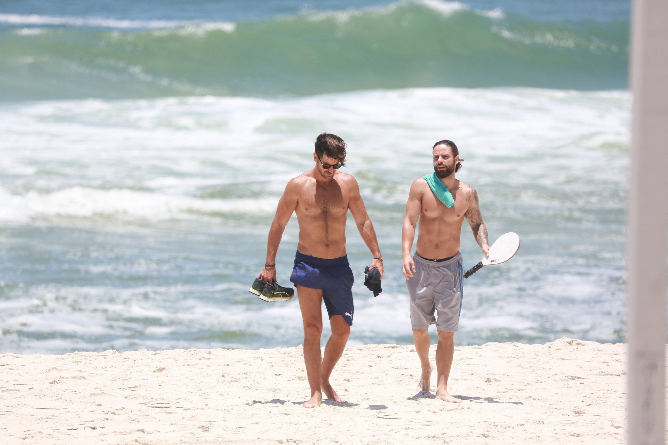 Marcos Pitombo foi clicado na praia da Barra da Tijuca nesta quinta-feira (22) ao lado do personal Rafael de Oliveira. O ator está de férias desde o fim de Orgulho e Paixão. Logo após a novela, ele viajou para San Andres y Providencia, na Colômbia. As fotos abaixo são de DilsonSilva: