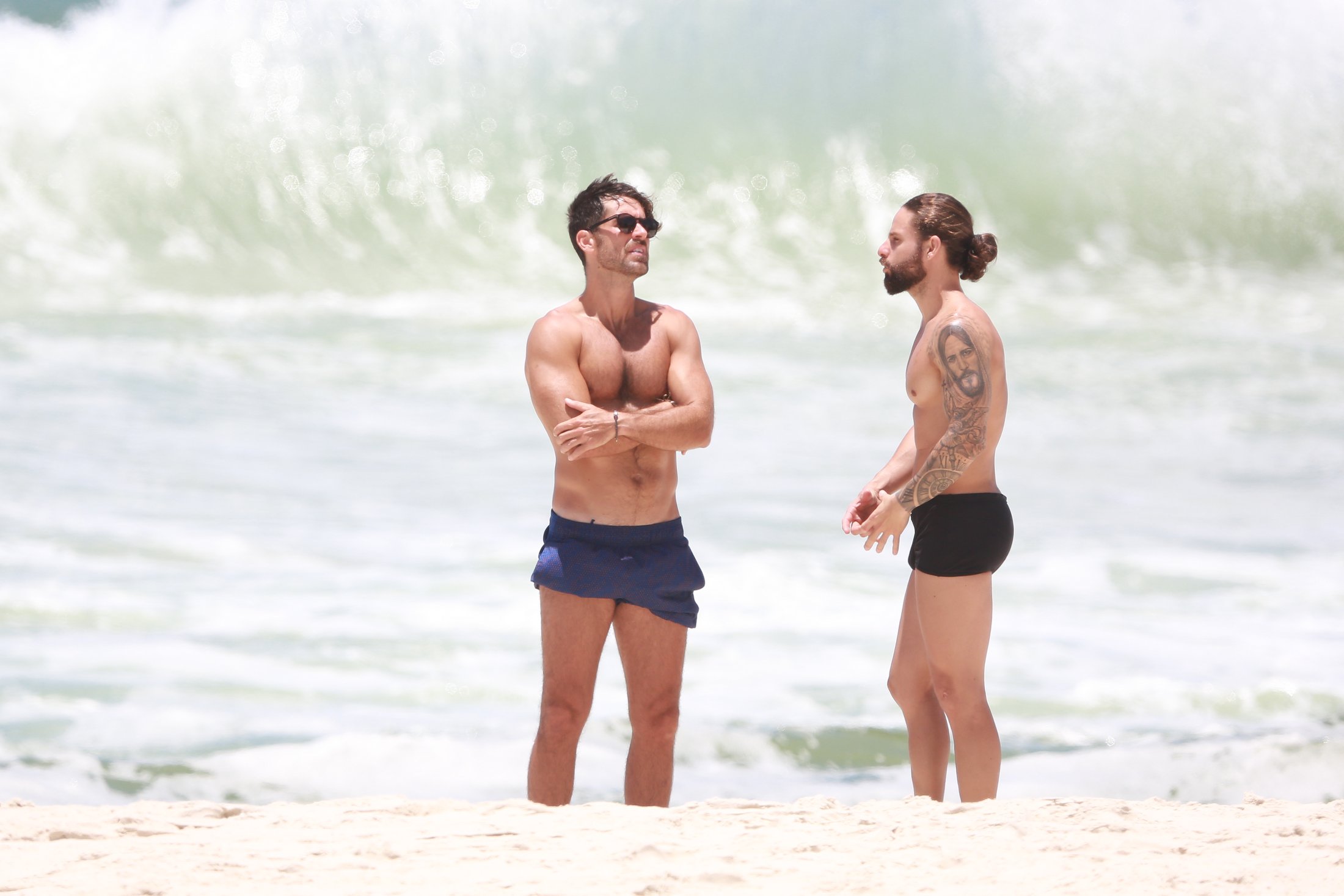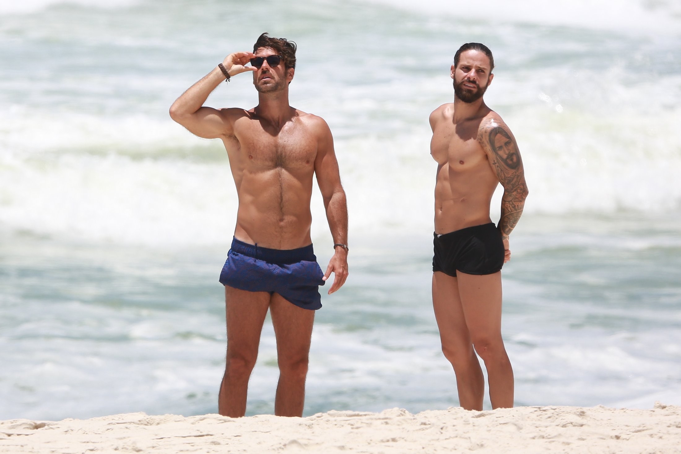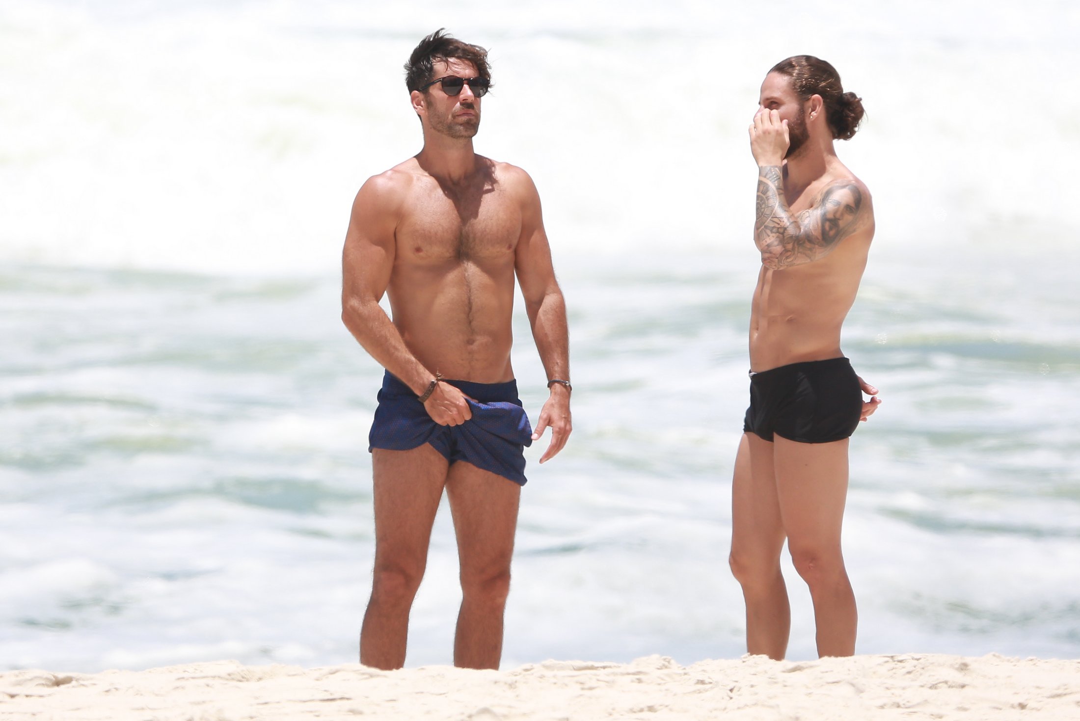 Marcos Pitombo foi clicado na praia da Barra da Tijuca nesta quinta-feira (22) ao lado do personal Rafael de Oliveira. O ator está de férias desde o fim de Orgulho e Paixão. Logo após a novela, ele viajou para San Andres y Providencia, na Colômbia. As fotos abaixo são de DilsonSilva: