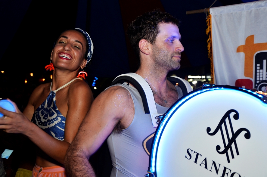 “Somos afrofuturistas, levamos as pessoas a um futuro onde separações de gênero cor e sexualidade não existem”, convida o ativista Akhaê, fundador do bloco. O coletivo conta com o publicitário Vinícius Yamada, o produtor Rodrigo Jacques e o designer Leandro Melo.