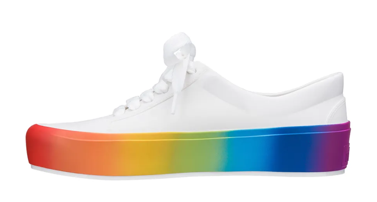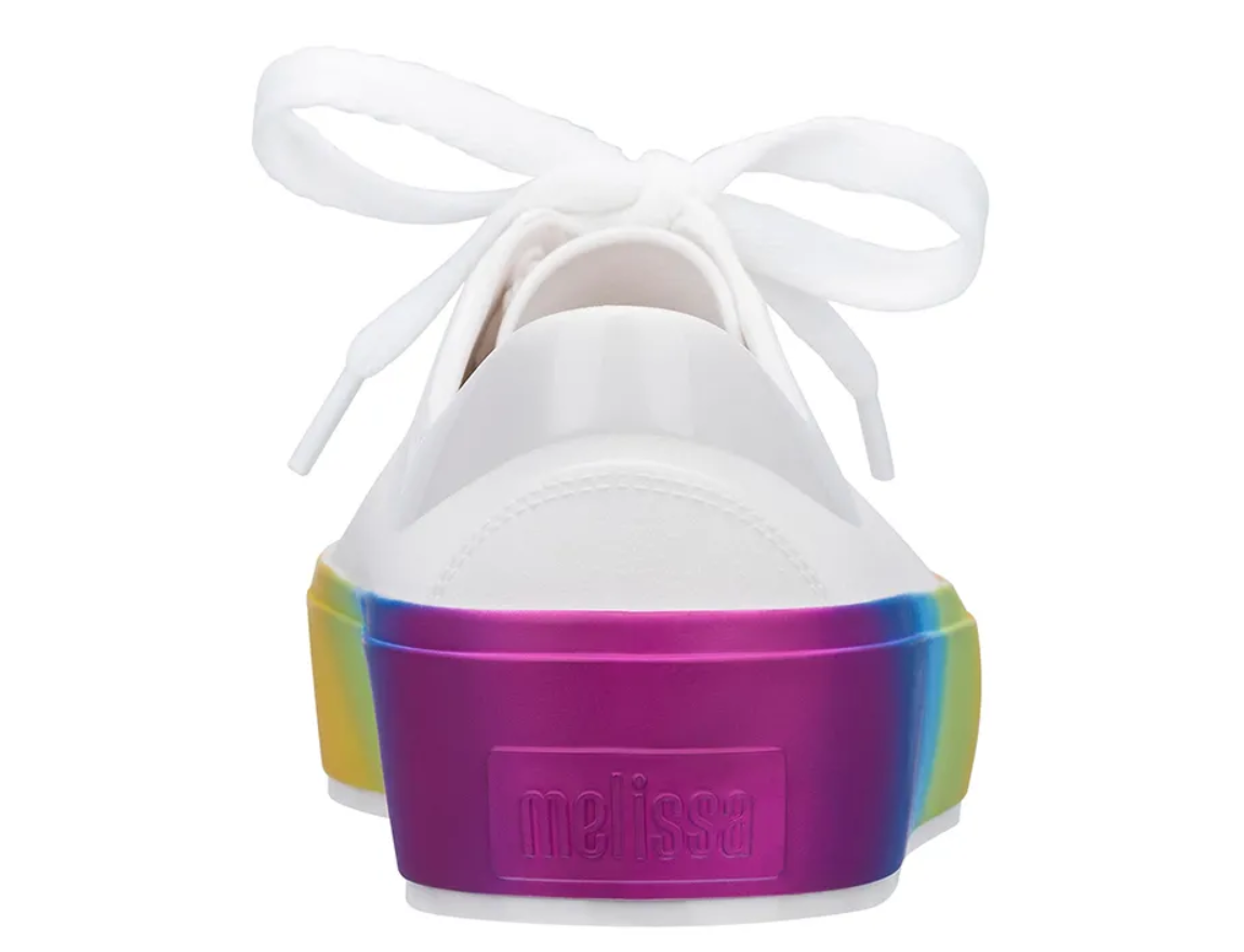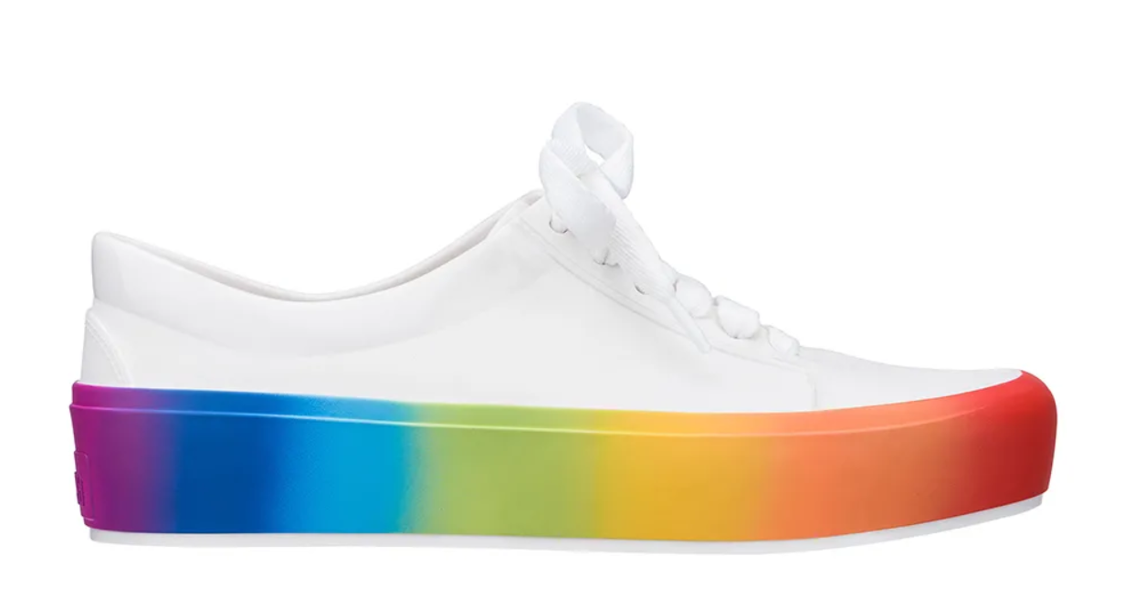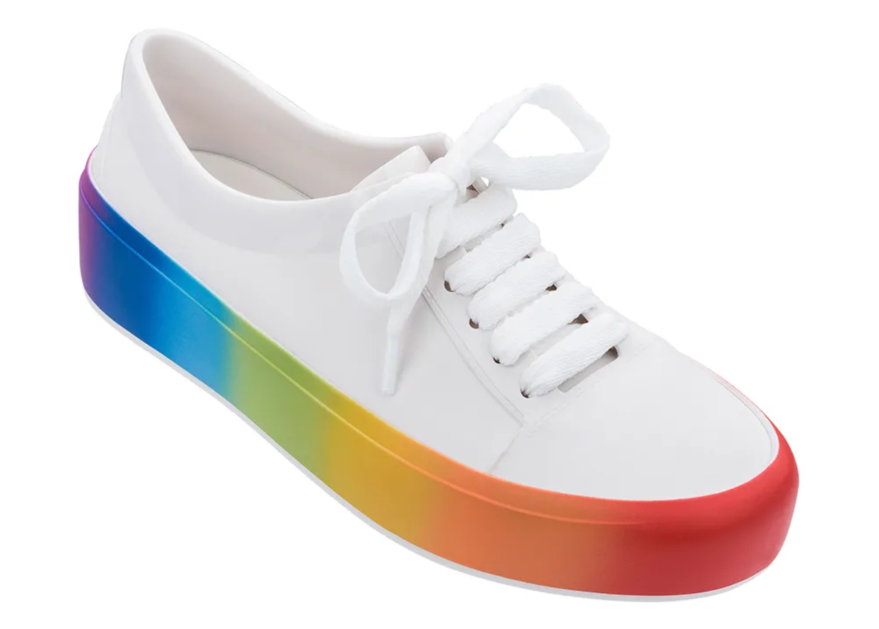 Aclamada marca de calçados em PVC com cheirinho de chiclete, a Melissa incluiu este mês opções bem pintosas no portfólio de sneakers. O tênis da linha “Street”, que nasceu com inspiração na cultura urbana e efervescência das ruas, tem design clássico e descomplicado e sola ‘super trendy’. Além do modelo com a estampa de com arco-íris, há também variações com animal print.