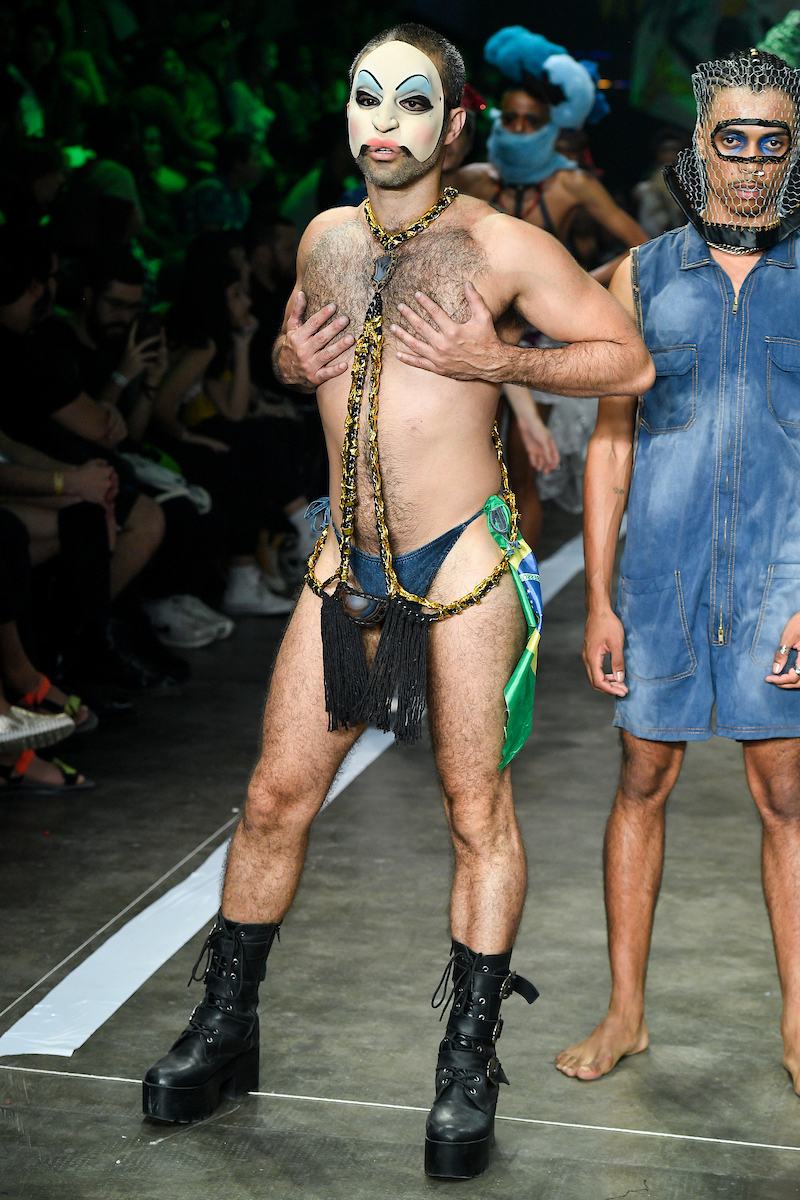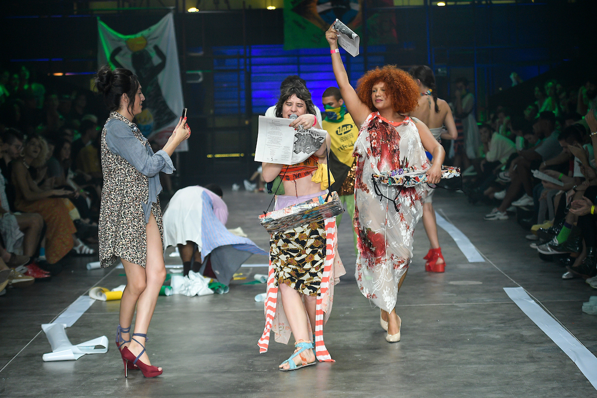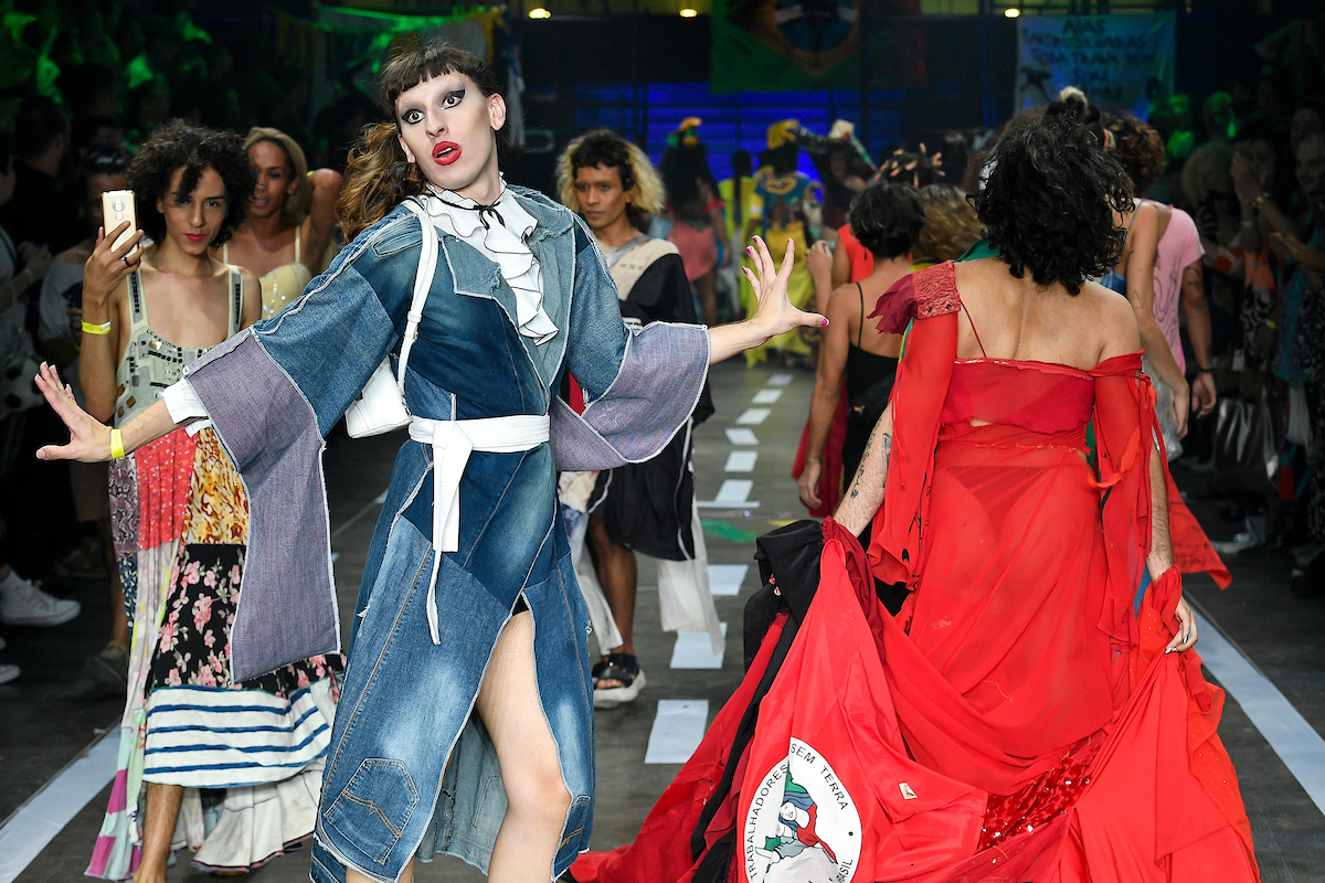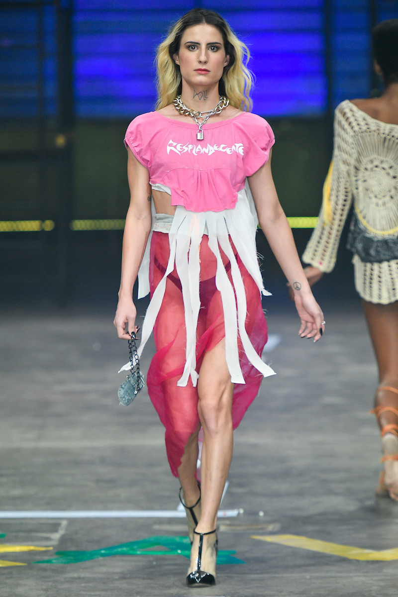 Em meio ao caos do país tropical, travestis resplandecem, não-bináries espalham a palavra decolonial, boycetas são resistência e mulheres cis negras são o único caminho para o futuro da nação. A coleção que foi apresentada nesta edição é o resultado de uma imersão artística no processo de costura com técnicas de reaproveitamento de materiais descartados, por meio do Instituto Tomie Ohtake direcionada pela estilista Vicente Perrotta, com mulheres TRANS e CIS que são atendidas em espaços de acolhimento, dentro do Galpão de Costura no Instituto Federal São Paulo. Além disto, a passarela recebe criações de 7 estilistas TRANSvestigêneres selecionades por Perrotta, cada um apresentou 3 looks upcycle, emergindo em todas as etapas da criação de uma performance/desfile na principal semana de moda criativa do país.