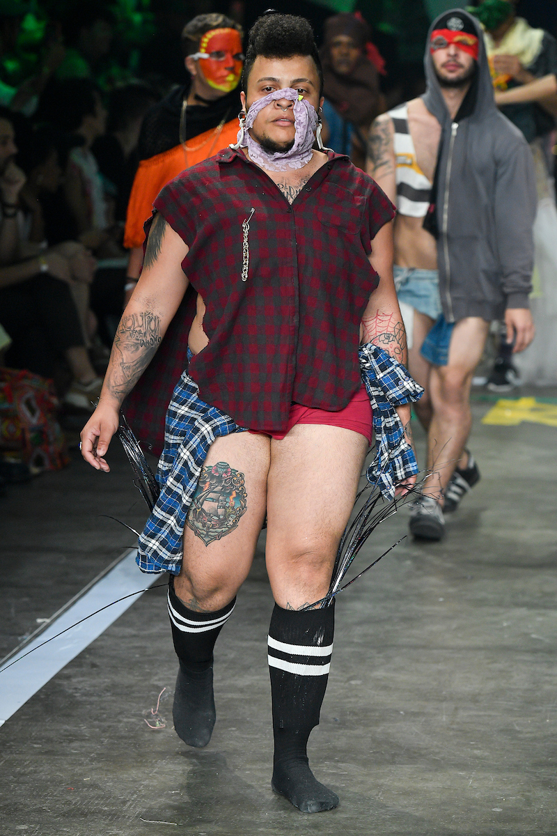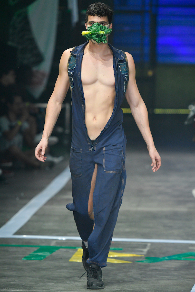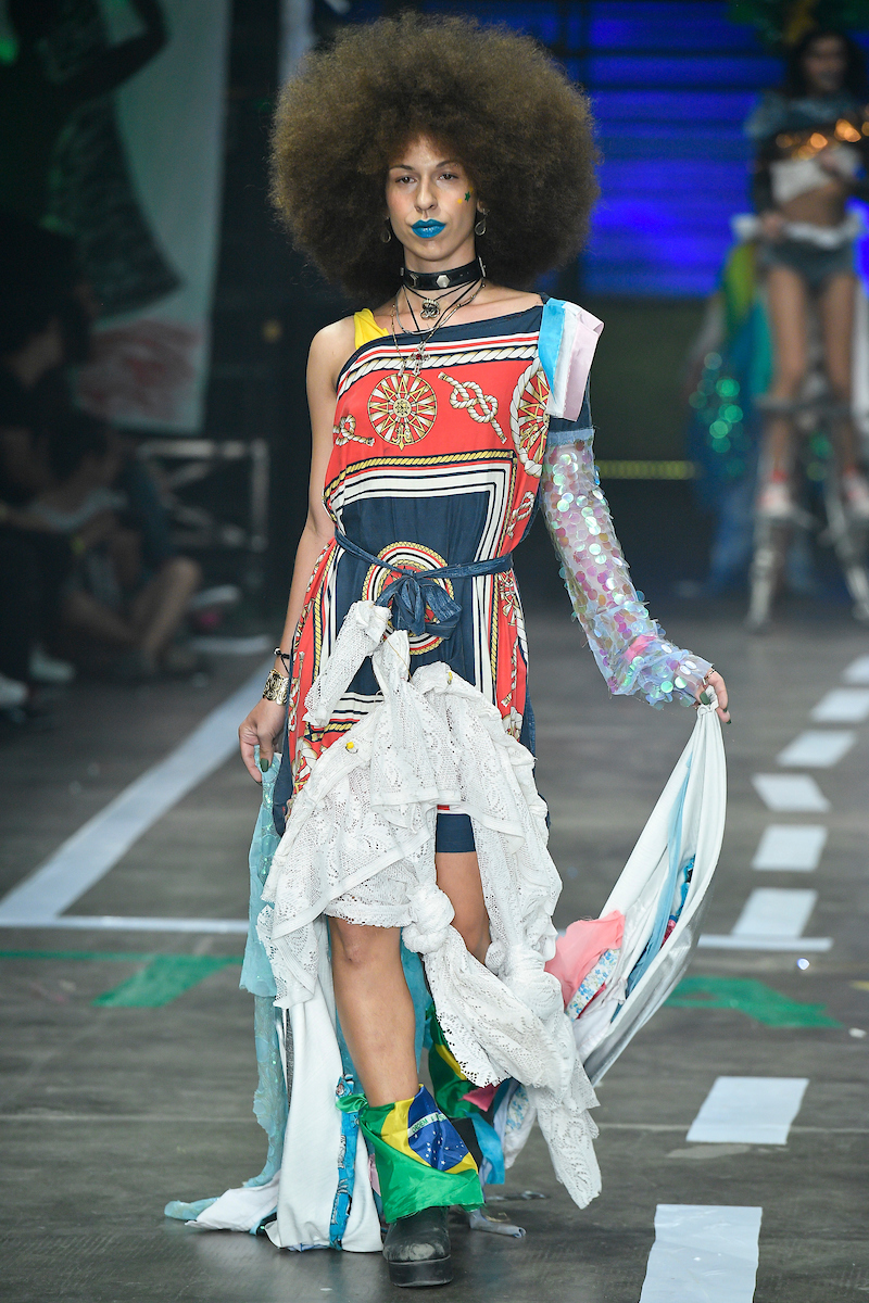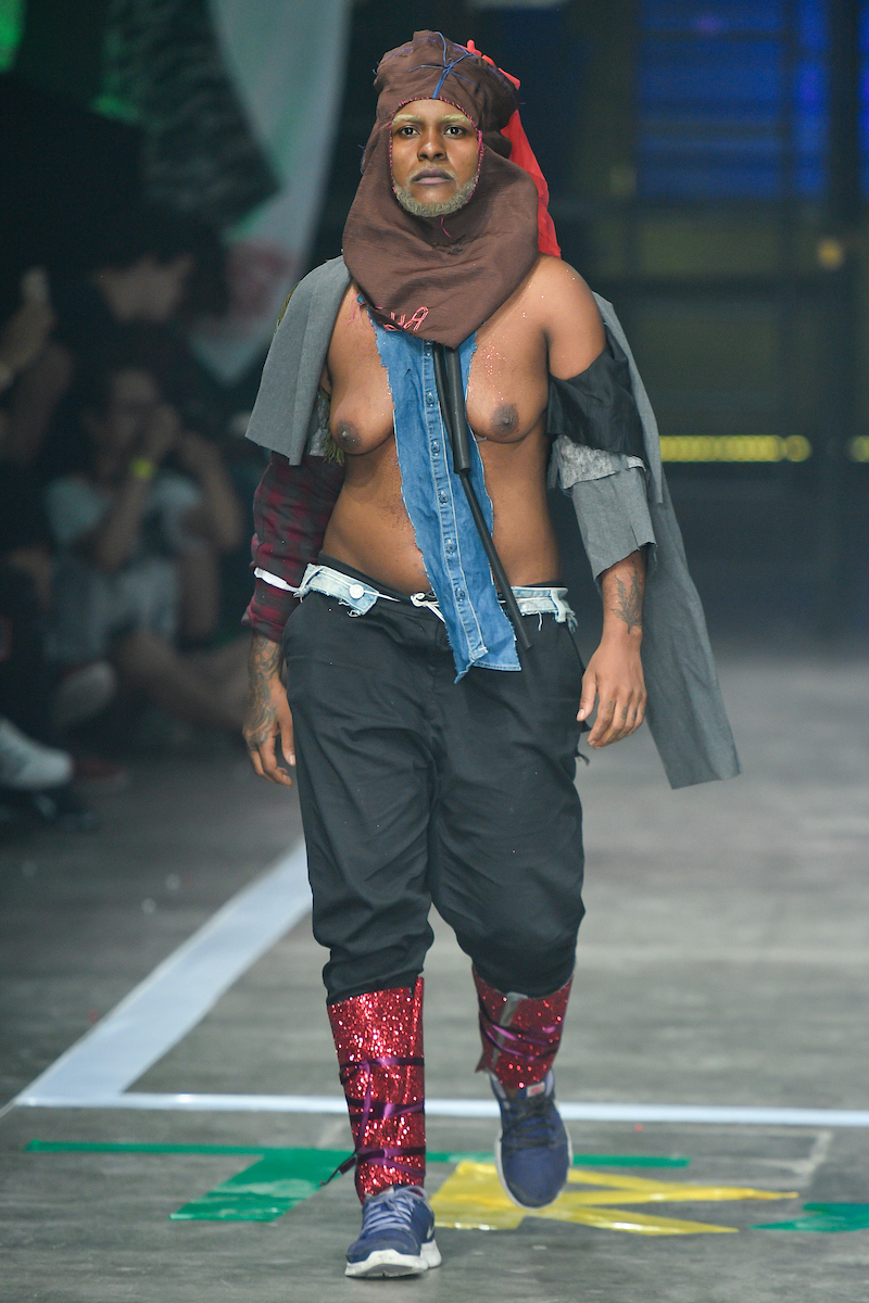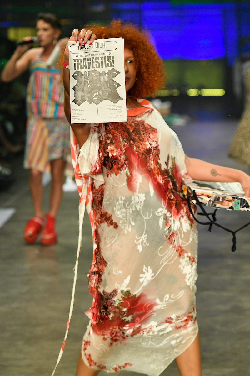 Em meio ao caos do país tropical, travestis resplandecem, não-bináries espalham a palavra decolonial, boycetas são resistência e mulheres cis negras são o único caminho para o futuro da nação. A coleção que foi apresentada nesta edição é o resultado de uma imersão artística no processo de costura com técnicas de reaproveitamento de materiais descartados, por meio do Instituto Tomie Ohtake direcionada pela estilista Vicente Perrotta, com mulheres TRANS e CIS que são atendidas em espaços de acolhimento, dentro do Galpão de Costura no Instituto Federal São Paulo. Além disto, a passarela recebe criações de 7 estilistas TRANSvestigêneres selecionades por Perrotta, cada um apresentou 3 looks upcycle, emergindo em todas as etapas da criação de uma performance/desfile na principal semana de moda criativa do país.