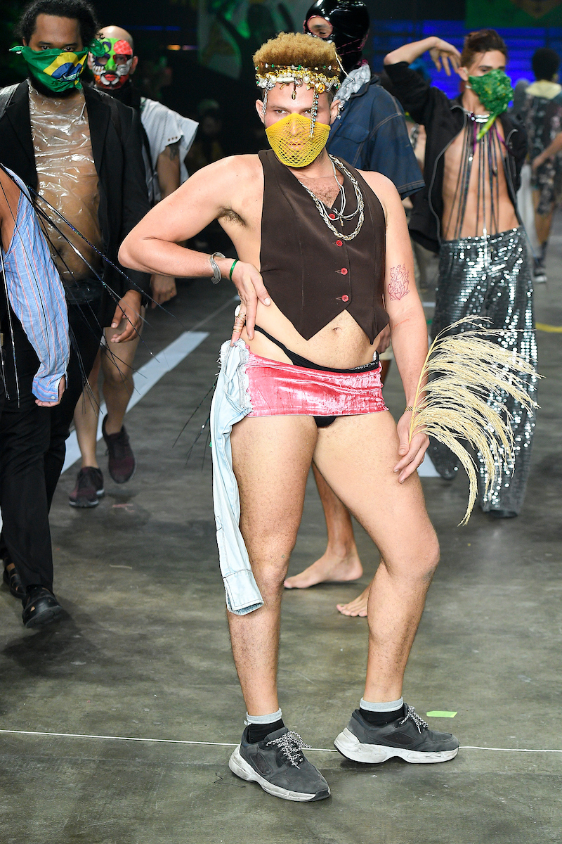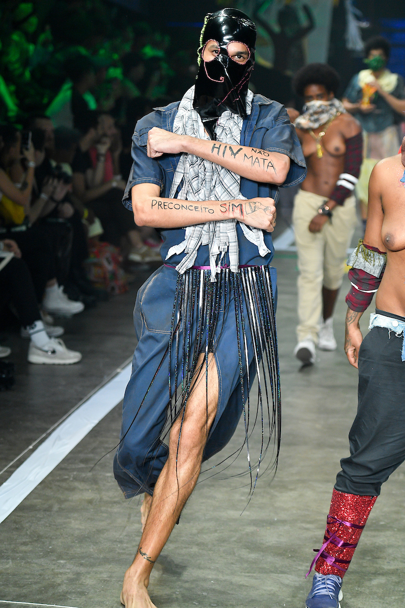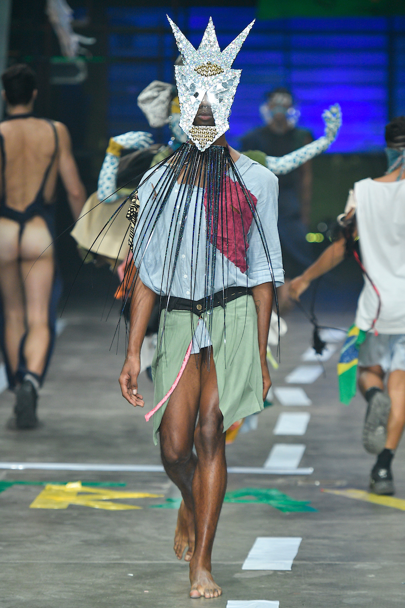 Marca de streetwear, criada em 2019, com o objetivo de trazer uma perspectiva de moda através da arte e seu constante movimento de mudança, inspirado pelo crescimento e readequação dessa indústria que nos oferece milhares de possibilidades e formas de expressão. Vivão levou para a passarela uma grande festa onde o tema era a arte de nossas vivências – a arte de existir e se expressar de maneira única, entendendo a nossa jornada, conquistas e história para prosseguir. Uma celebração sobre quem somos. A coleção Vivão Project 2020 exalta cores e personalidade com peças pintadas à mão, imprimindo o conceito de que corpos são telas. O desfile contou ainda com a direção de Dudu Bertholini.