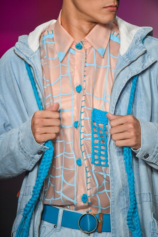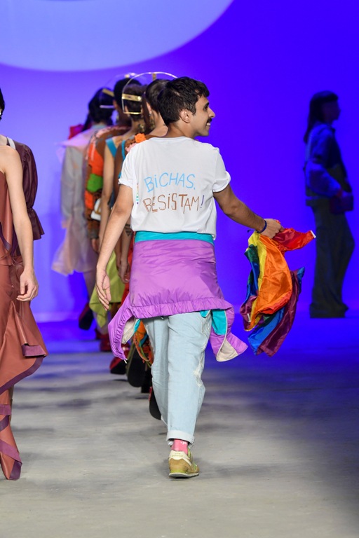 A escolha dos materiais, cores e acessórios se descola da variação climática para se basear em narrativas. Os moldes sempre muito amplos e carregados em volume procuram não demarcar os limites do corpo, e trazem uma mistura da sofisticação do linho com o shape confortável das ruas. A cartela de cores é inspirada no trabalho do artista Arthur Bispo do Rosário, com cores que variam dos terrosos e pastéis ate o verme lima e azul piscina, mas traz também uma pitada de vermelho para demarcar a vibração e força do nordeste. Nesse contexto, os crochês ganham ainda mais destaque dentro da nova coleção.