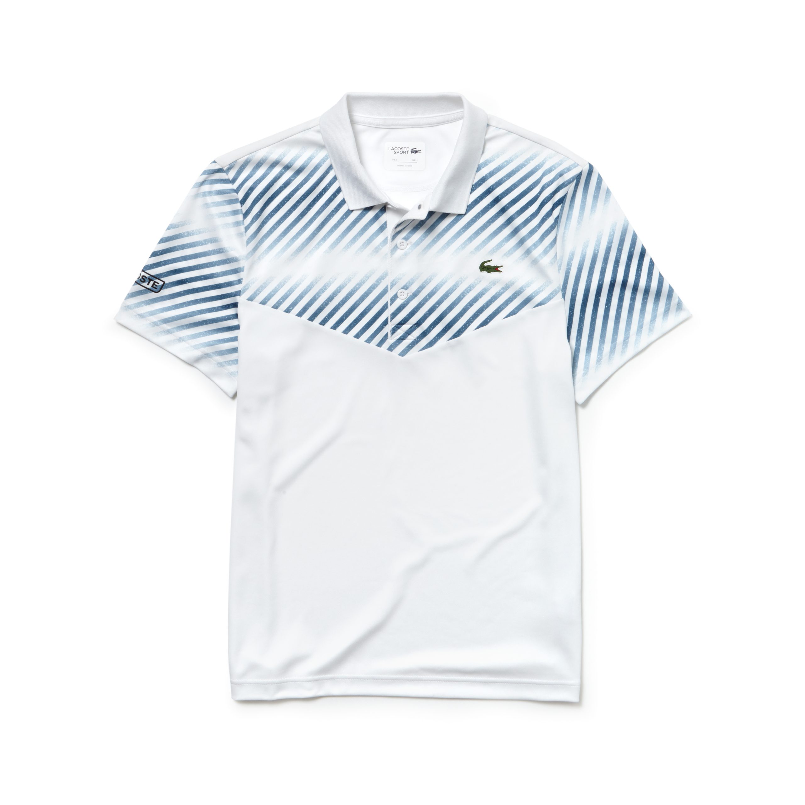Para os homens, a proposta dos uniformes do time LACOSTE é técnica e moderna, garantindo conforto na hora de jogar e um look imediatamente reconhecível. Esta nova coleção favorece os cortes esportivos e os materiais arejados e com stretch como o piqué ultra-dry, o mesh e o tafetá. Em termos gráficos, uma estampa criativa azul com linhas diagonais texturizadas e sombreadas, domina uma polo preta com zíper e decora a parte superior de uma polo branca. Um toque de fantasia, enfatizado pela sobriedade do short preto ou branco em tafetá com stretch.