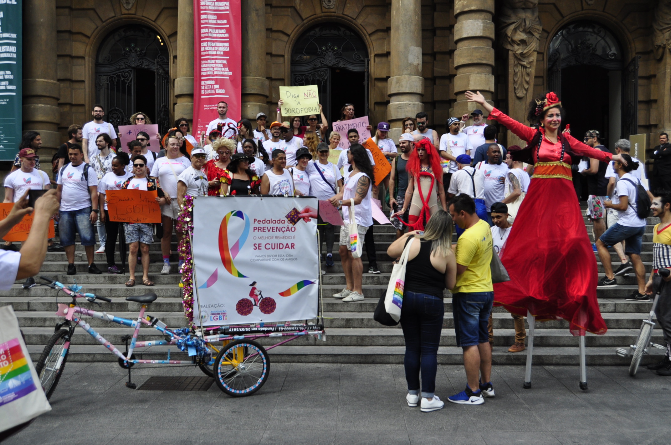 Parte do calendário oficial de eventos do município, a caminhada – que também integra o Dezembro Vermelho, mês de conscientização dos direitos das pessoas que vivem com o HIV – reuniu muitos participantes já na concentração, na Praça da República, às 14h. A abertura contou com o agradecimento da coordenadora de políticas para LGBTI, Bruna Svetlic, aos presentes, lembrando a importância da luta pelos direitos das pessoas com HIV de receberem tratamento e de serem tratadas sempre com dignidade. Em seguida teve oficina de cartazes e empoderamento com a militante LGBTI Nicolle Mahier. A drag queen Tchaka, com muita animação deu a largada, convidou todos a iniciarem a caminhada.